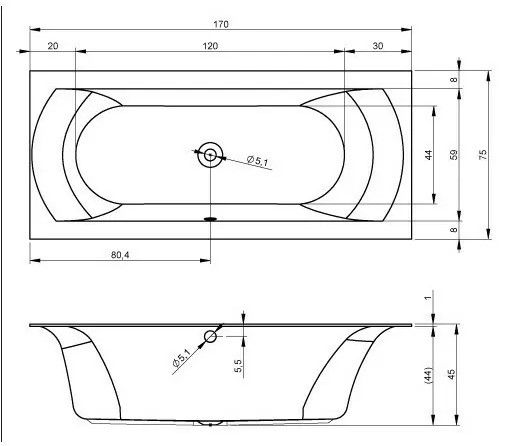 Слив-перелив расположен по центру ванны.