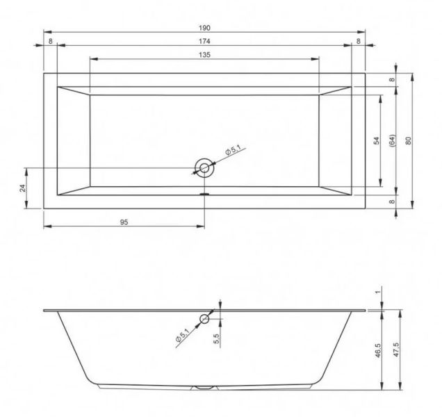 Акриловая ванна RIHO Lugo 190x80 изготовлена из высококачественного листа акрила белого цвета, полностью армирована.