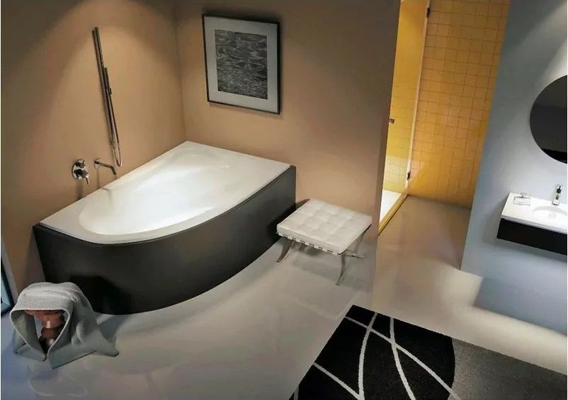 Материал непористый и гладкий, поэтому на нём не остаются известковый налёт и бактерии, поверхность ванны легко очищается.