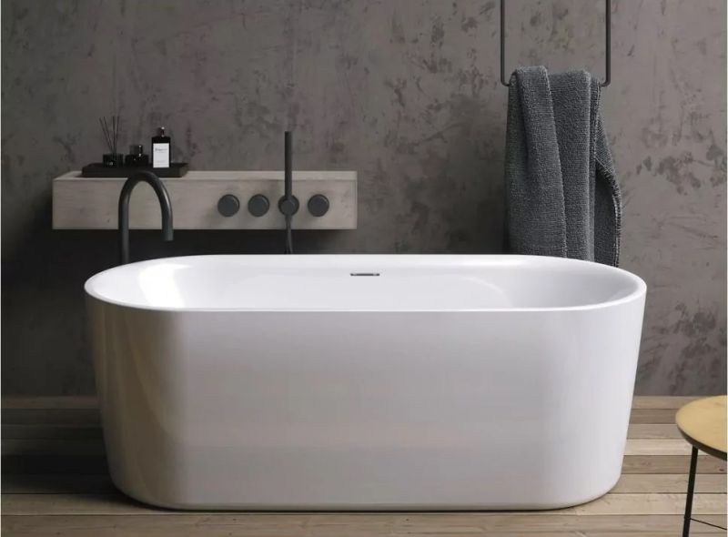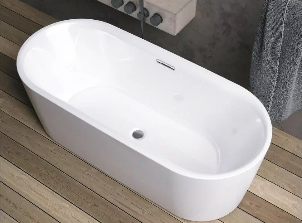 Отдельно стоящая белая глянцевая ванна RIHO Modesty 170х76 FALL своего названия: ванна сочетает в себе роскошный внешний вид с комфортом и удобством для пользователя, не будучи эксцентричной. Это ванна овальной формы с красивым тонким бортиком.