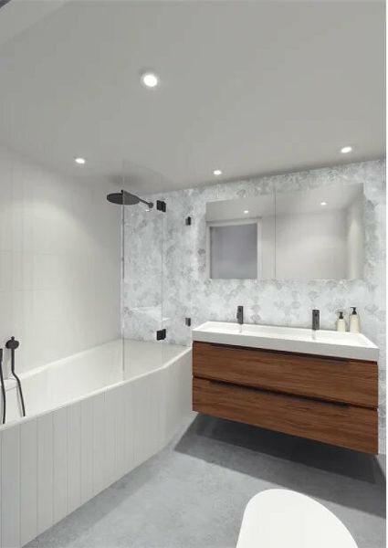 Тонкие борта ванны создают большое внутреннее пространство, где удобно лежать и принимать душ.