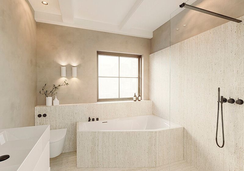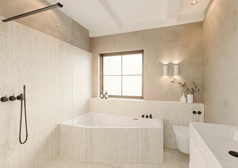 Тонкие борта ванны создают большое внутреннее пространство, где удобно лежать и принимать душ.