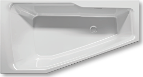 Асимметричная ванна RIHO RETHINK Space 170x90 R PLUG & PLAY RIHO FALL, из глянцевого белого акрила с тонкими бортами и большим внутренним пространством, сливом Push-Open и щелевым переливом, представляет собой полностью собранную на заводе конструкцию.