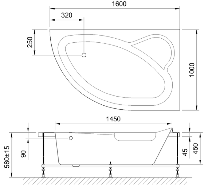 Акриловая угловая ванна ALPINE 160x100x58 имеет ассиметричную форму с четкими линиями изгибов что позволяет ей отлично гармонировать практически в любом интерьере. Анатомическая, округлая форма чаши позволяет комфортно разместиться в ней одному человеку, а диагональное расположение позволяет разместить в углу просторное сидение.