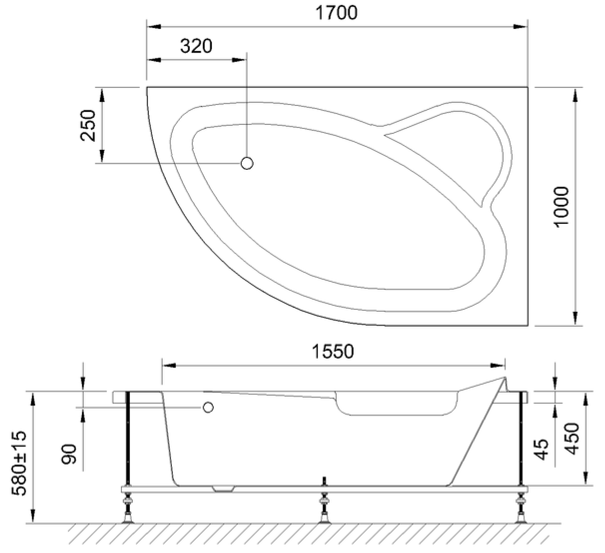 Акриловая угловая ванна ALPINE 170x100x58 имеет ассиметричную форму с четкими линиями изгибов что позволяет ей отлично гармонировать практически в любом интерьере. Анатомическая, округлая форма чаши позволяет комфортно разместиться в ней одному человеку, а диагональное расположение позволяет разместить в углу просторное сидение.