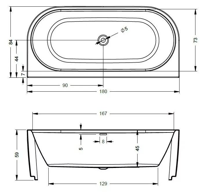 Белая матовая ванна поставляется в стандартной комплектации с белым матовым сливом