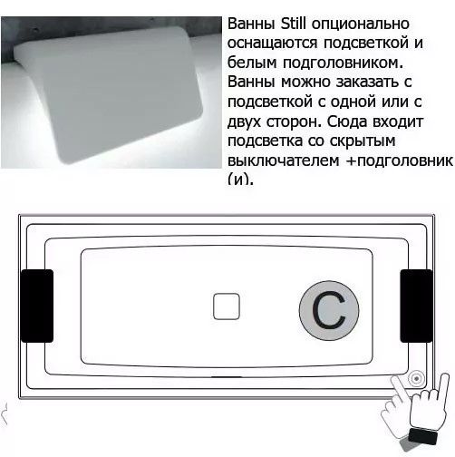 Акриловая ванна с подсветкой Riho Still Square LED Fall B099035005 180х80см светодиоды и подголовники с двух сторон заполнение через перелив белый купить