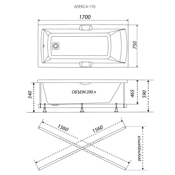 Акриловая ванна Triton Алекса Щ0000049498 170x75 см на Х-каркасе белый