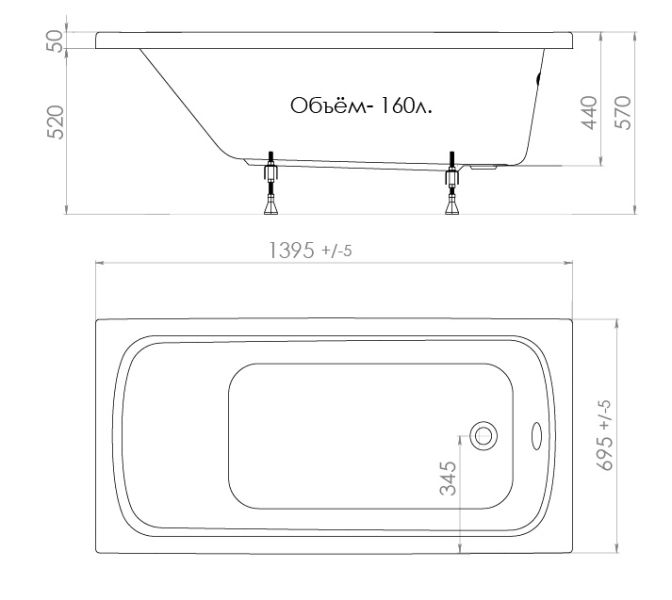 Акриловая ванна Triton Стандарт 140x70 см