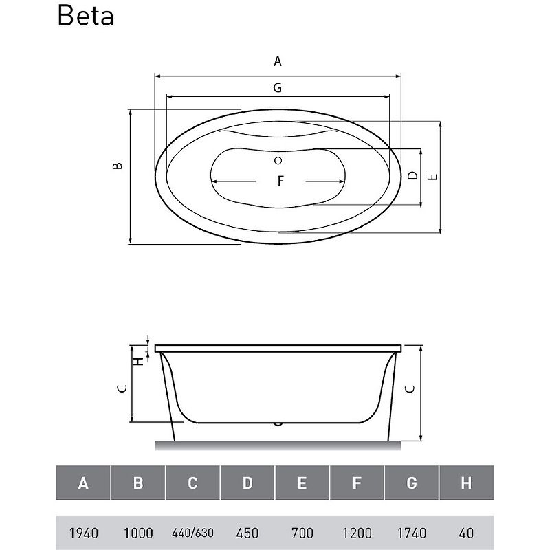 Акриловая ванна Vayer Beta 194x100 KPL Exklusiv Гл000006827 без гидромассажа