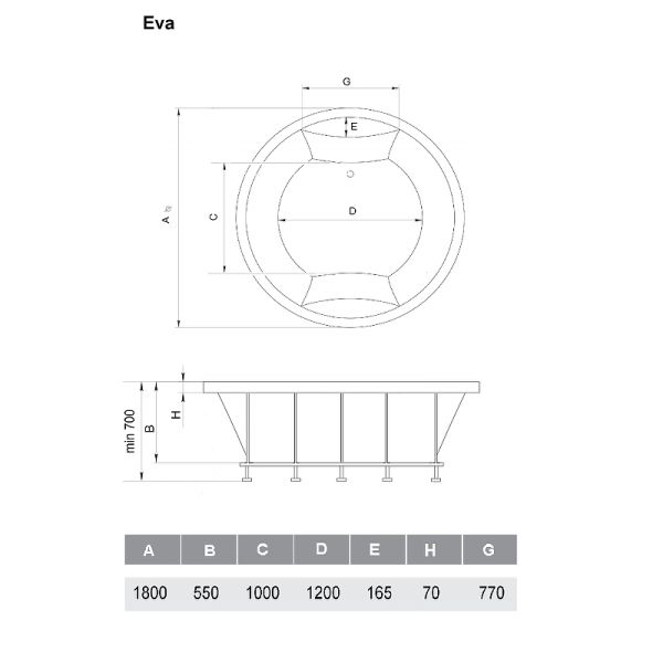 Диаметр ванны: 180 см.