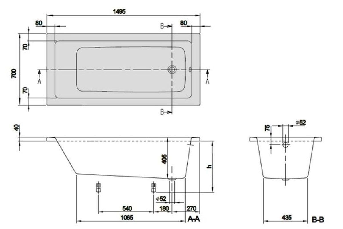 Акриловая ванна Villeroy Boch Targa Plus Solo UBA150NES2V01+U99740000 150х70 см ножки в комплеткеРазмер: 150х70х42 см
