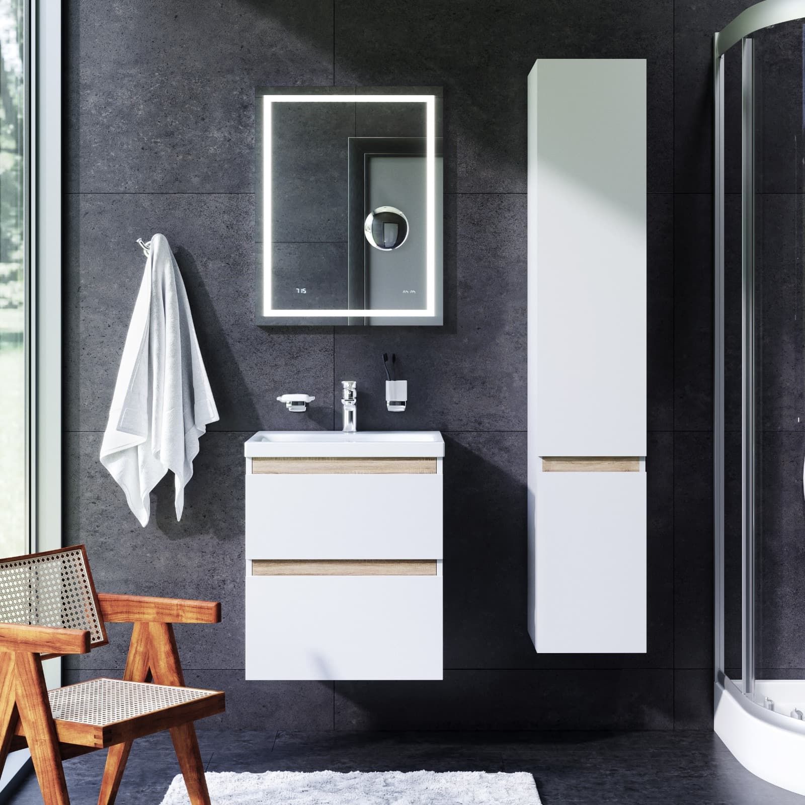может позволит себе каждый. Самое эстетичное сочетание цветов и фактур от дизайн-бюро Danelon Meroni (Великобритания & Италия): белые глянцевые фасады дополнены отделкой под светлое дерево.Функциональный органайзер в первом ящике позволит хранить необходимые косметические средства под рукой и в полном порядке. Внутреннее покрытие каждого ящика выполнено в современном