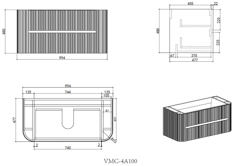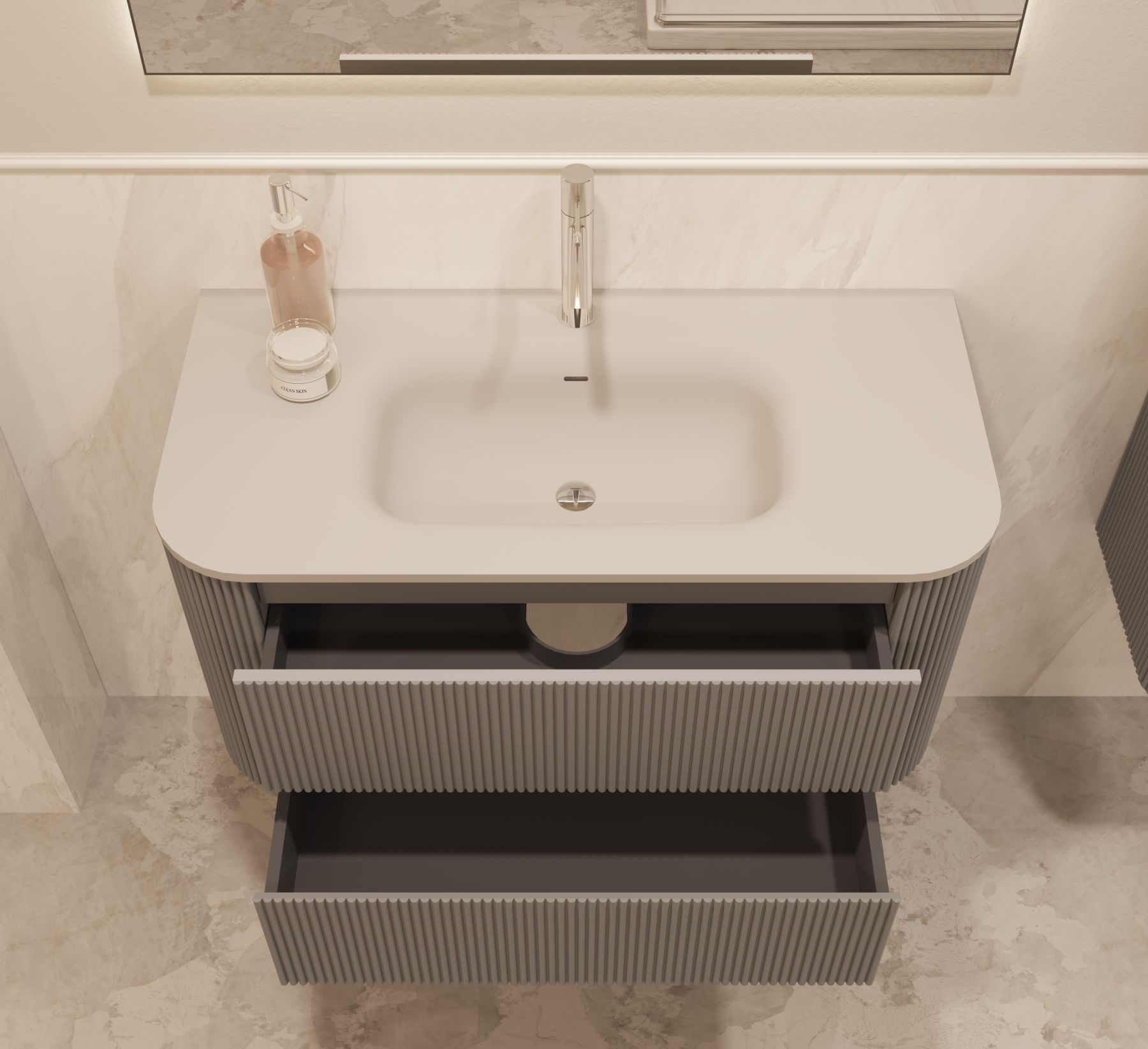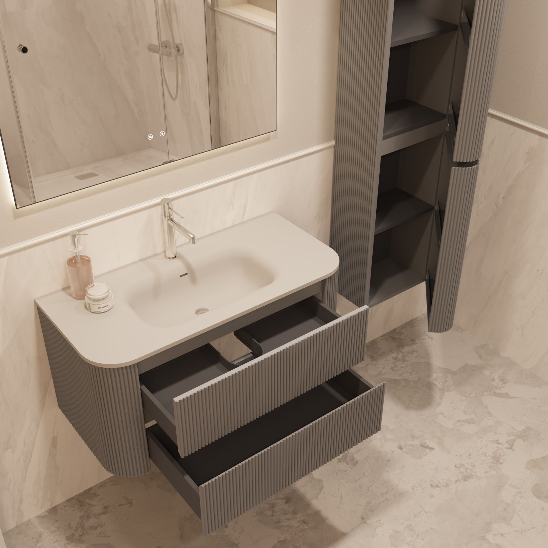 База под раковину Vincea Alto 1000 подвесная, 2 выкатных ящика soft close, светло-серый матовыйсветло-серый