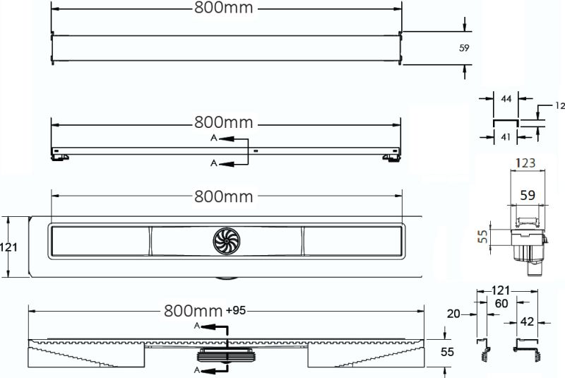 Berges Wasserhaus C1 Norma 80 090039 Душевой лоток Матовый хром купить