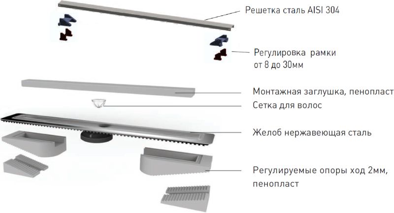 Душевой лоток Berges Wasserhaus C1 Norma 090137 60 Матовый хром – является надежным дренажным устройством в составе современной системы водоотведения. Страна изготовления – Германия, коллекция C1 Norma.Berges Wasserhaus C1 Norma 090137 60 Матовый хром выполнен в одном корпусе с гидрозатвором, благодаря чему достигается герметичность изделия и создается надежный барьер против запахов из системы канализации. Прямоугольную форму решетки сантехнического устройства Berges Wasserhaus можно удачно обыграть при установке устройства вдоль стен, рядом с перегородкой и т.д. Видимая часть конструкции изготовлена из полированной нержавеющей стали, которая отлично сочетается с другими элементами коллекции C1 Norma. Габаритные размеры изделия составляют 69.50х12.10 см при максимальной длине и ширине внешней части 60.0х4.4 см. Дренажное устройство производства Berges Wasserhaus имеет минимальную высоту – тем самым достигается простота установки путем встраивания в пол ванной. Конструкция имеет горизонтальный выпуск для прямого вывода стоков в канализацию. Высокая пропускная способность делает лоток Berges Wasserhaus C1 Norma 090137 60 Матовый хром одним из лучших вариантов при эксплуатации как в частных домовладениях, так и помещениях коммерческого назначения – банях, душевых спортзалов и т.д. Пластик, из которого сделан патрубок и элементы слива дренажного устройства Berges Wasserhaus, не боится вредного воздействия влаги, бытовой химии, высокой температуры и прочих разрушающих факторов. Хром матовый цвет наружной решетки лотка Berges Wasserhaus прекрасно сочетается с другими элементами коллекции C1 Norma.