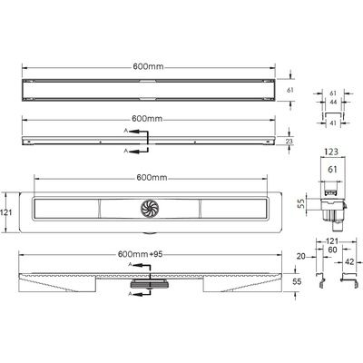 Душевой лоток Berges Wasserhaus B1 Antik 090024 60 Матовый хром – является надежным дренажным устройством в составе современной системы водоотведения. Страна изготовления – Германия, коллекция B1 Antik.Berges Wasserhaus B1 Antik 090024 60 Матовый хром выполнен в одном корпусе с гидрозатвором, благодаря чему достигается герметичность изделия и создается надежный барьер против запахов из системы канализации. Прямоугольную форму решетки сантехнического устройства Berges Wasserhaus можно удачно обыграть при установке устройства вдоль стен, рядом с перегородкой и т.д. Видимая часть конструкции изготовлена из полированной нержавеющей стали, которая отлично сочетается с другими элементами коллекции B1 Antik. Габаритные размеры изделия составляют 69.50х12.10 см при максимальной длине и ширине внешней части 60.0х6.1 см. Дренажное устройство производства Berges Wasserhaus имеет минимальную высоту – тем самым достигается простота установки путем встраивания в пол ванной. Конструкцией предусмотрен вертикальный выпуск сточных вод. Этим достигается высокая пропускная способность лотка Berges Wasserhaus B1 Antik 090024 60 Матовый хром и возможность монтажа в любом месте, независимо от схемы разводки канализационных труб. Пластик, из которого сделан патрубок и элементы слива дренажного устройства Berges Wasserhaus, не боится вредного воздействия влаги, бытовой химии, высокой температуры и прочих разрушающих факторов. Хром матовый цвет наружной решетки лотка Berges Wasserhaus прекрасно сочетается с другими элементами коллекции B1 Antik.