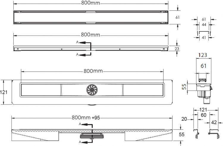 Душевой лоток Berges Wasserhaus B1 Keramik 090019 80 Матовый хром