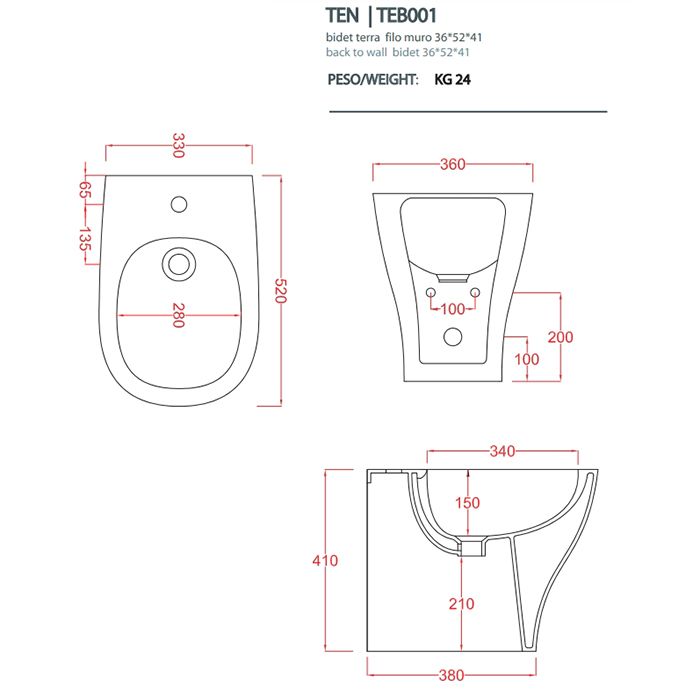 Биде Artceram TEN TEB001 01 00 bi белоеArtceram TEN Биде напольное 36х52, с 1 отв под смеситель, без креплений, цвет белый