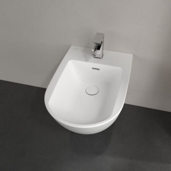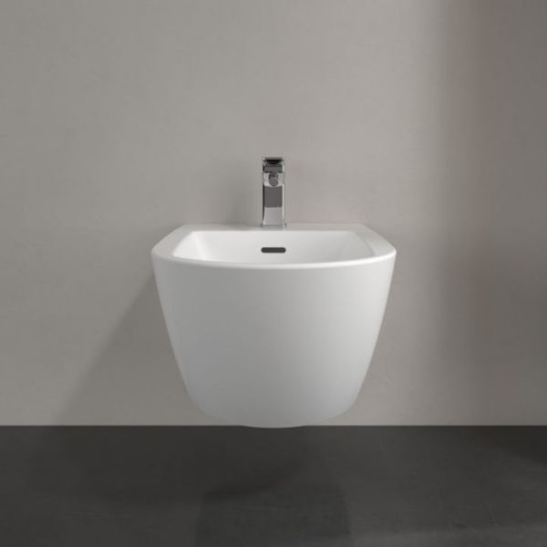 Биде Villeroy Boch Subway 3.0 настенный, 375 x 560 mm, Stone White CeramicPlus 447000RW белый камень