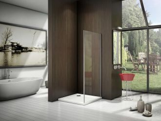 Ширина:90 смВысота:185 смВес:24 кгСтенки:стекло, 6 мм, прозрачноеПрофиль:алюминий, белый