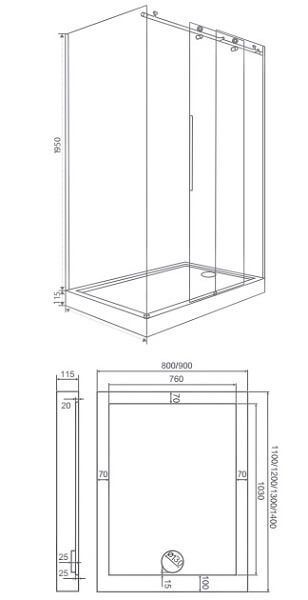 Ширина:90 смВысота:195 смВес:32 кгСтенки:стекло, 8 мм, прозрачноеПрофиль:алюминий, хром-