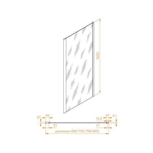 Боковая панель RGW Z-050-4 комплектуется с моделями высотой 1500 мм и цветом профиля «хром»