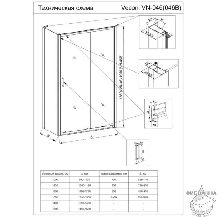 Боковая панель Veconi KP-03B, 900х1950 черный, стекло прозрачное купить