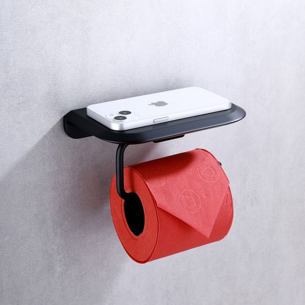 Бумагодержатель ABBER Nord AA1530B с полкой для телефона чёрный матовый