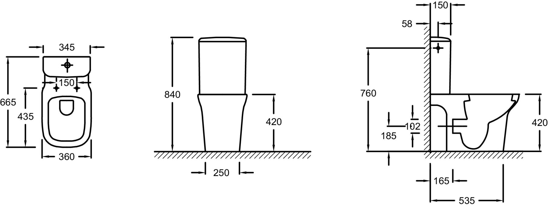 • Прилегание унитаза к стене: