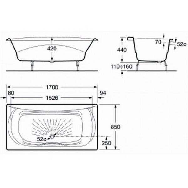 Чугунная ванна Roca Akira 170x85 2325G000R