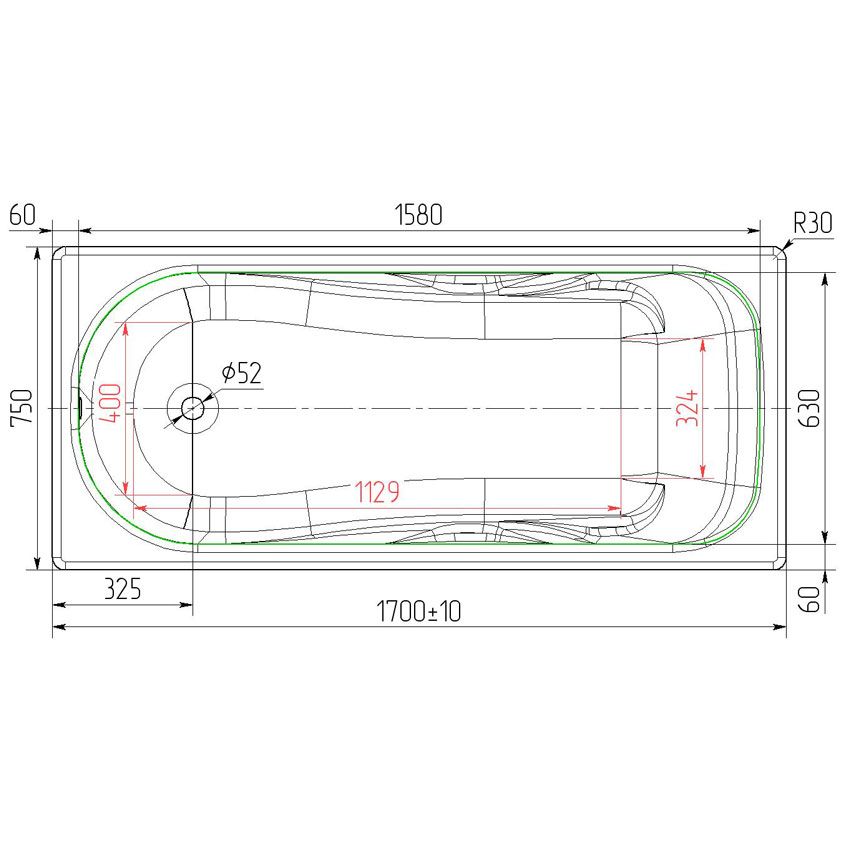 Чугунная ванна Универсал Сибирячка 170x75 см