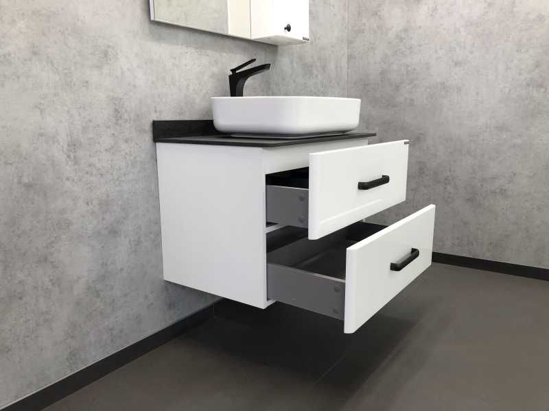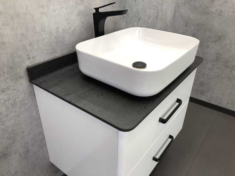 Comforty Тумба-умывальник "Амстердам-75" белая с черной столешницей, с раковиной Comforty T-Y9378