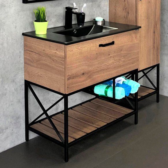 COMFORTY. Тумба-умывальник "Бредфорд-90" дуб темный с белой раковиной COMFORTY 90E