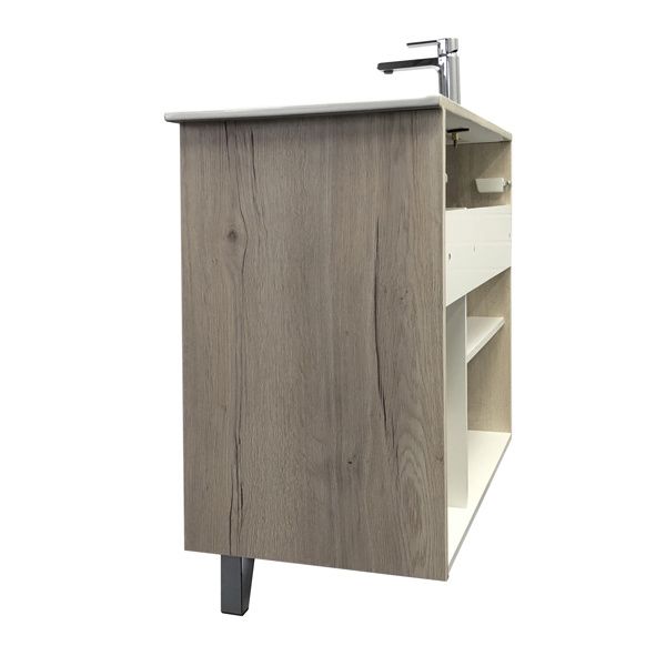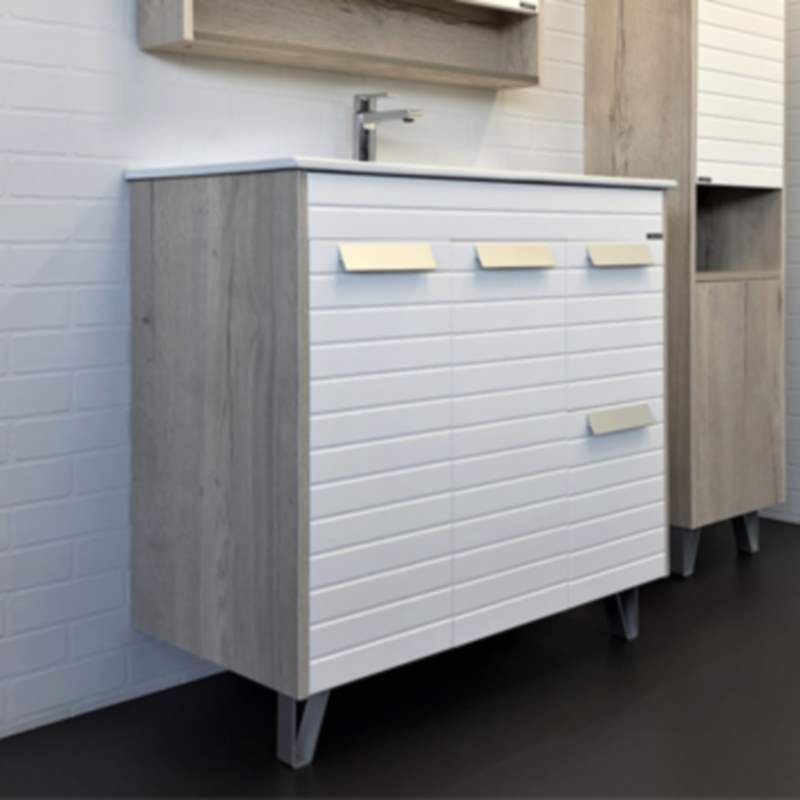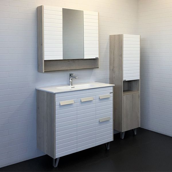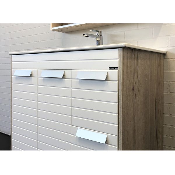Тумба Comfortу Клеон-90Н с раковиной Comforty 9090M, белый/дуб дымчатый, 00-00004757Вместительная тумба под раковину на декоративных ножках с двумя распашными дверцами оснащенными петлями с плавным закрыванием и двумя ящиками. Корпус тумбы изготовлены из влагостойкого ДСП, созданного по уникальной технологии «Синхронное тиснение» в декоре «дуб дымчатый». Этот декор при прикосновении дарит ощущение натуральной древесины. Фасады из МДФ фрезерованы горизонтальными линиями и окрашены белой матовой эмалью.Основные характеристики:Монтаж: напольный