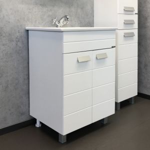 Тумба с раковиной Comfortу Модена M-60, напольная, белый матовый, раковина Quadro 60 белая, 00-00001642Тумба с раковиной