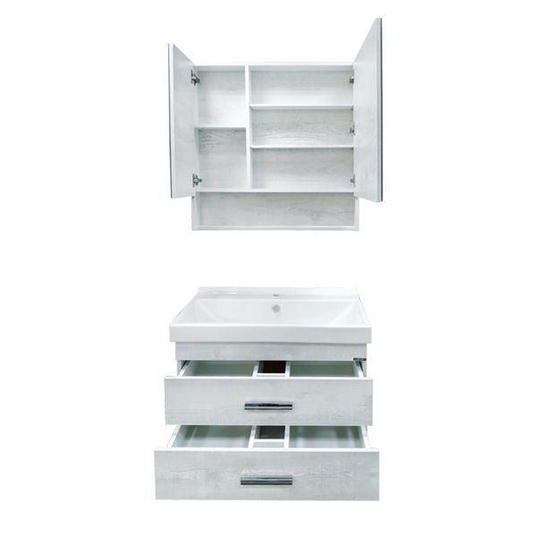 Название: Тумба-умывальник Артикул: Никосия 60П Варианты цвета корпуса и фасадов: Дуб белый Материал корпуса и фасадов: влагостойкое ЛДСП Габариты (ШхВхГ): 600*530*400 мм Комплектация: раковина Fest 60 (санитарный фарфор) Подвесная тумба с двумя выдвижными ящиками оснащенными системой плавного закрывания. Оригинальные эргономичные металлические ручки.