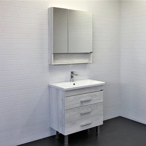 Тумба Comfortу Никосия-70Н с раковиной Como 70, дуб белый, 00-00005793Напольная тумба-умывальник с тремя выкатными ящиками. Ящики оснащены доводчиками для плавного закрывания. Корпус и фасады тумбы из влагостойкого ДСП актуальной фактуры "Дуб белый" с имитацией натурального дерева. Тумба укомплектована прямоугольной раковиной из санитарного фарфора и четырьмя ножками. Тумба подготовлена для подключения водоснабжения снизу.Основные характеристики:Монтаж: напольный