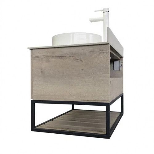 COMFORTY Тумба-умывальник Порто 75 00-00009321Подвесная тумба-умывальник в стиле лофт Порто 75 с одним широким ящиком оснащенным системой плавного закрывания и нижней полкой открытого хранения для полотенец. В основе тумбы - каркас из стального профиля окрашенный в цвет серый графит.