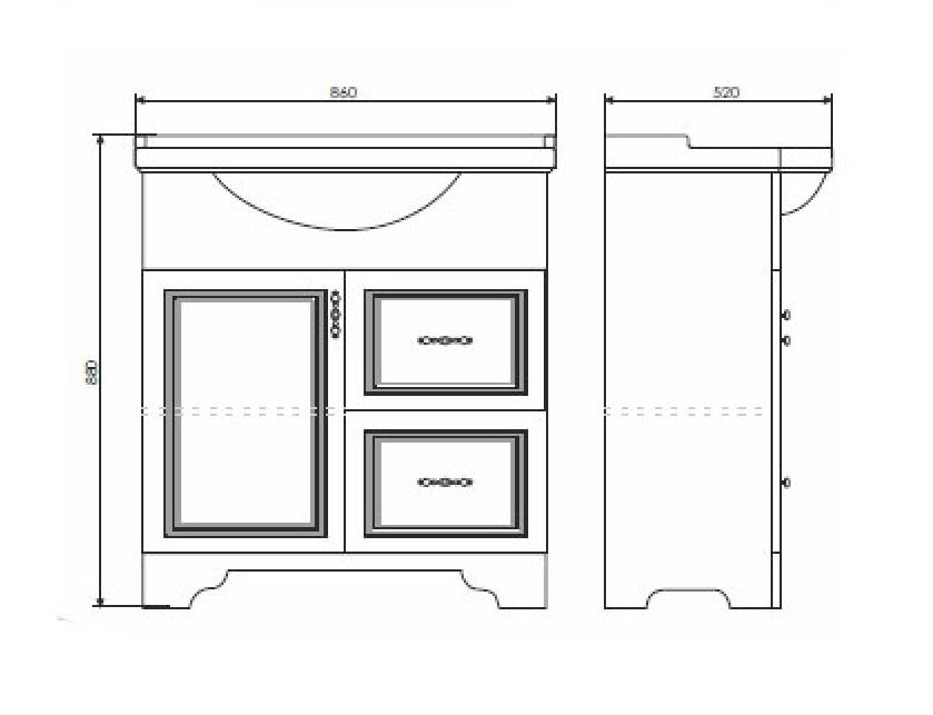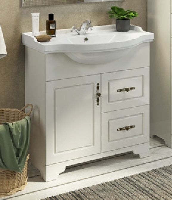 Тумба с раковиной Comfortу Севилья-85, напольная, слоновая кость, раковина Сенеж белая, 00-00003083Тумба с раковиной