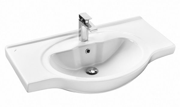Раковина Сенеж 87, фарфор, прямоугольная, с отверстием под смеситель, белая