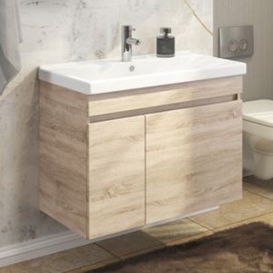 Comforty Тумба-умывальник "Тромсе-80" дуб сонома с раковиной Fest 80 F01