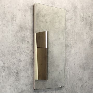 Высококачественное зеркальное полотно с амальгамой на основе серебра. Зеркальное полотно смонтировано на рамку из ВЛДСП дуб дымчатый.