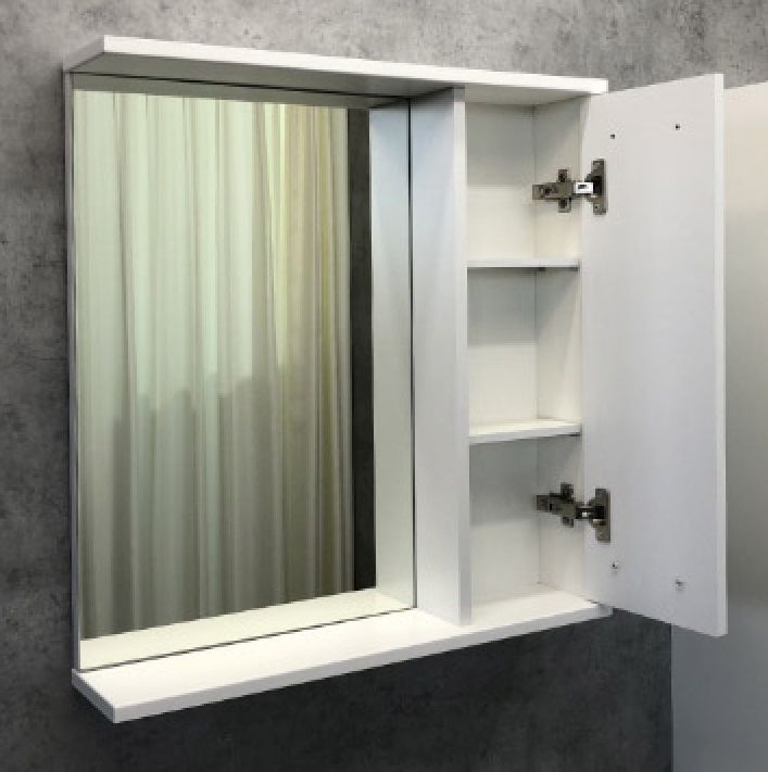 Comforty Зеркало шкаф Никосия 70 00-00007619Створки оснащены петлями с плавным закрыванием. Высококачественное зеркальное полотно с амальгамой на основе серебра. Обе боковые створки зеркала открываются наружу. За широкой створкой две горизонтальные полки, за узкой одна. На нижней внешней полке можно расположить невысокие принадлежности для умывания.Основные характеристики:Монтаж: подвесной
