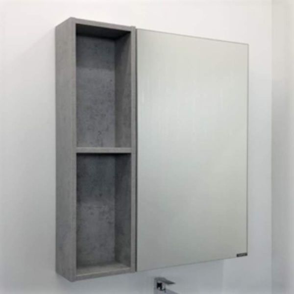 Зеркальный шкаф Comfortу Осло-70, бетон светлый, 00-00006164Высококачественное зеркальное полотно с амальгамой на основе серебра. Створка оснащена петлями с плавным закрыванием. Петли у створки снаружи. За зеркальной створкой две горизонтальные полки, в пространстве открытого хранения - одна. Зеркало-шкаф универсально - может быть подвешено в правом и левом варианте.Основные характеристики:Монтаж: подвесной