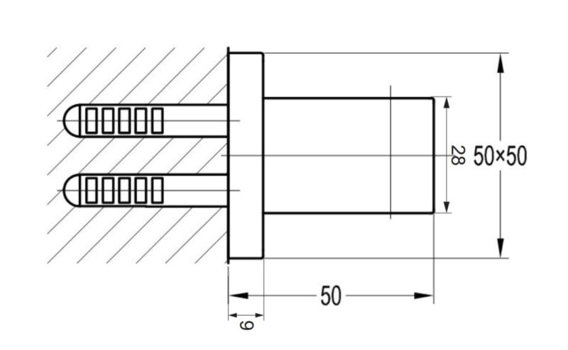 - размеры розетки: 5x5 см, расстояние от стены: 5 см