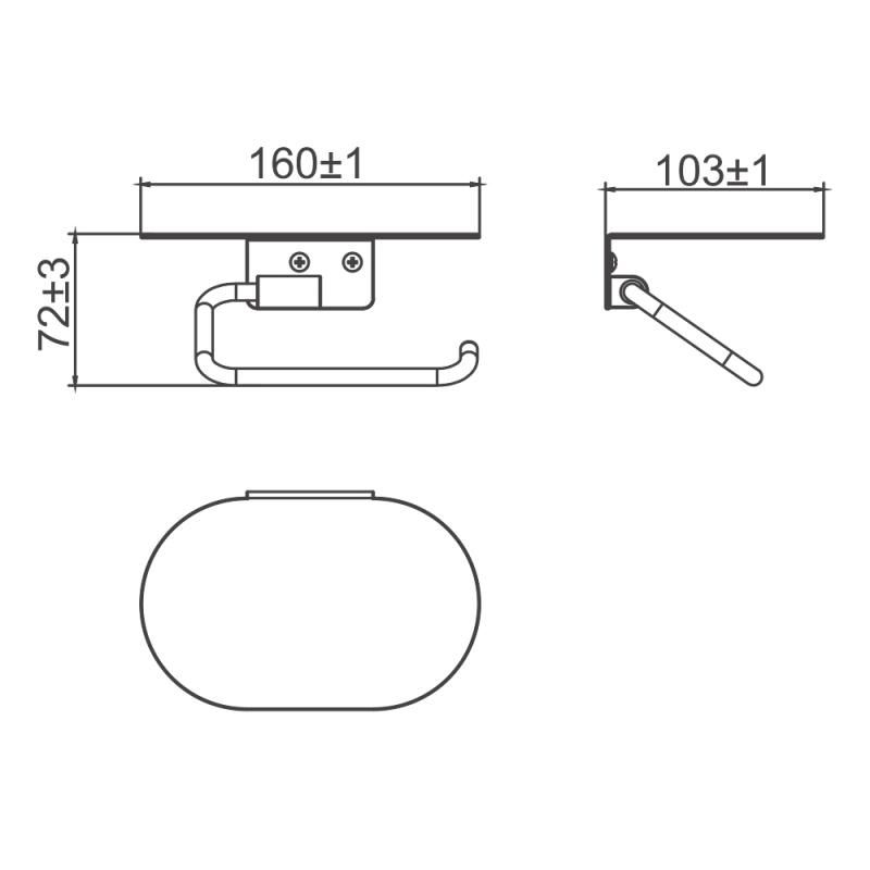 Овальная форма бумагодержателя с полочкой обеспечивает удобное размещение туалетной бумаги и позволяет экономить пространство в ванной комнате.