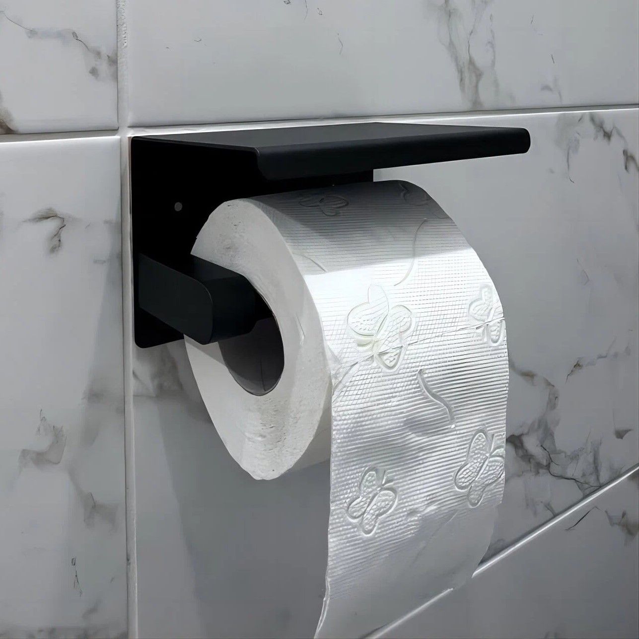 Maretti PB51P11 — стильный и функциональный держатель для туалетной бумаги. Матовый чёрный цвет и удобная полочка позволяют хранить аксессуары или туалетные принадлежности аккуратно и компактно. Изготовлен из нержавеющей стали, что обеспечивает прочность и долговечность изделия. В комплекте с держателем идут саморезы и дюбели для удобного монтажа