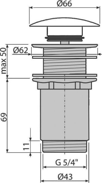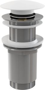 Донный клапан для раковины AlcaPlast клик-клак 5/4" цельнометаллический с большой белой заглушкой A395B