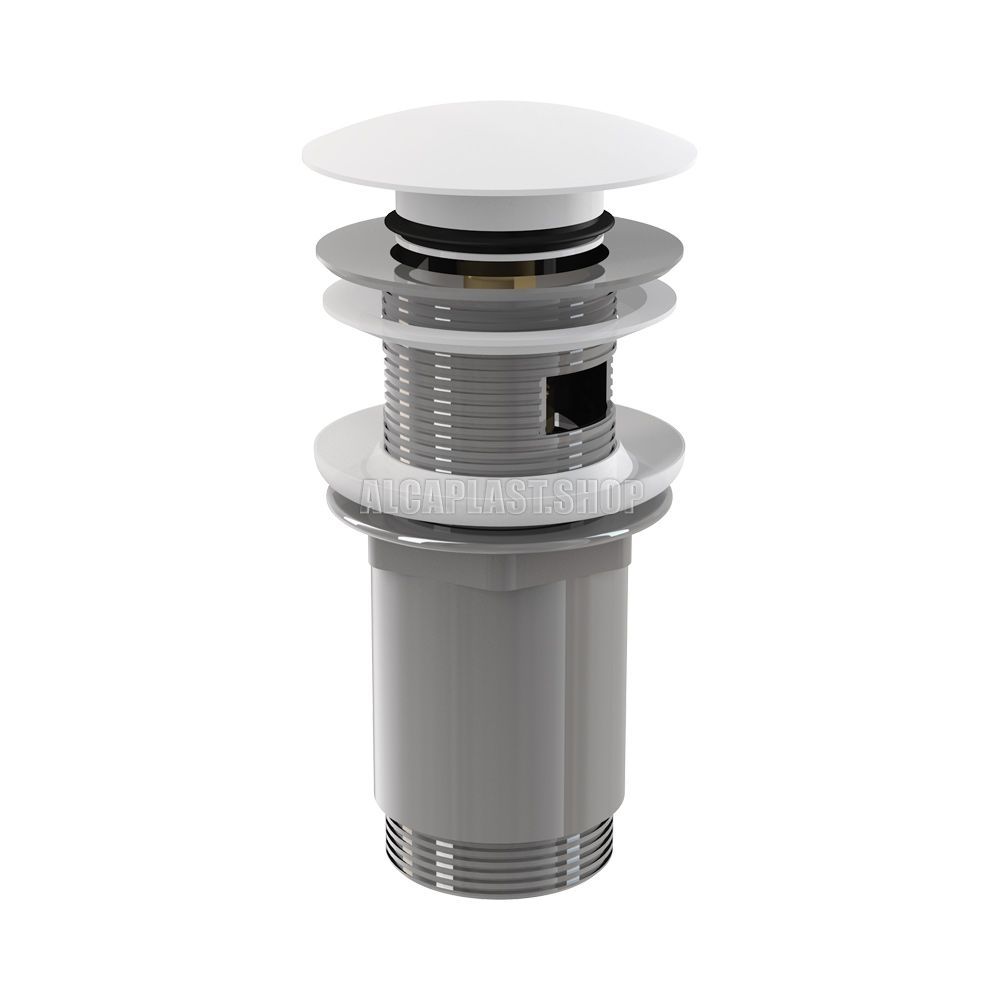 Донный клапан для раковины AlcaPlast клик-клак 5/4" цельнометаллический с переливом и большой белой заглушкой A392B купить